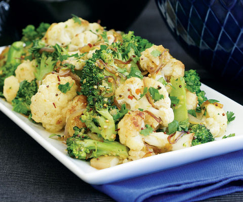 - Without touching it let the cauliflower and broccoli cook until browned on the bottom then turn over and repeat.